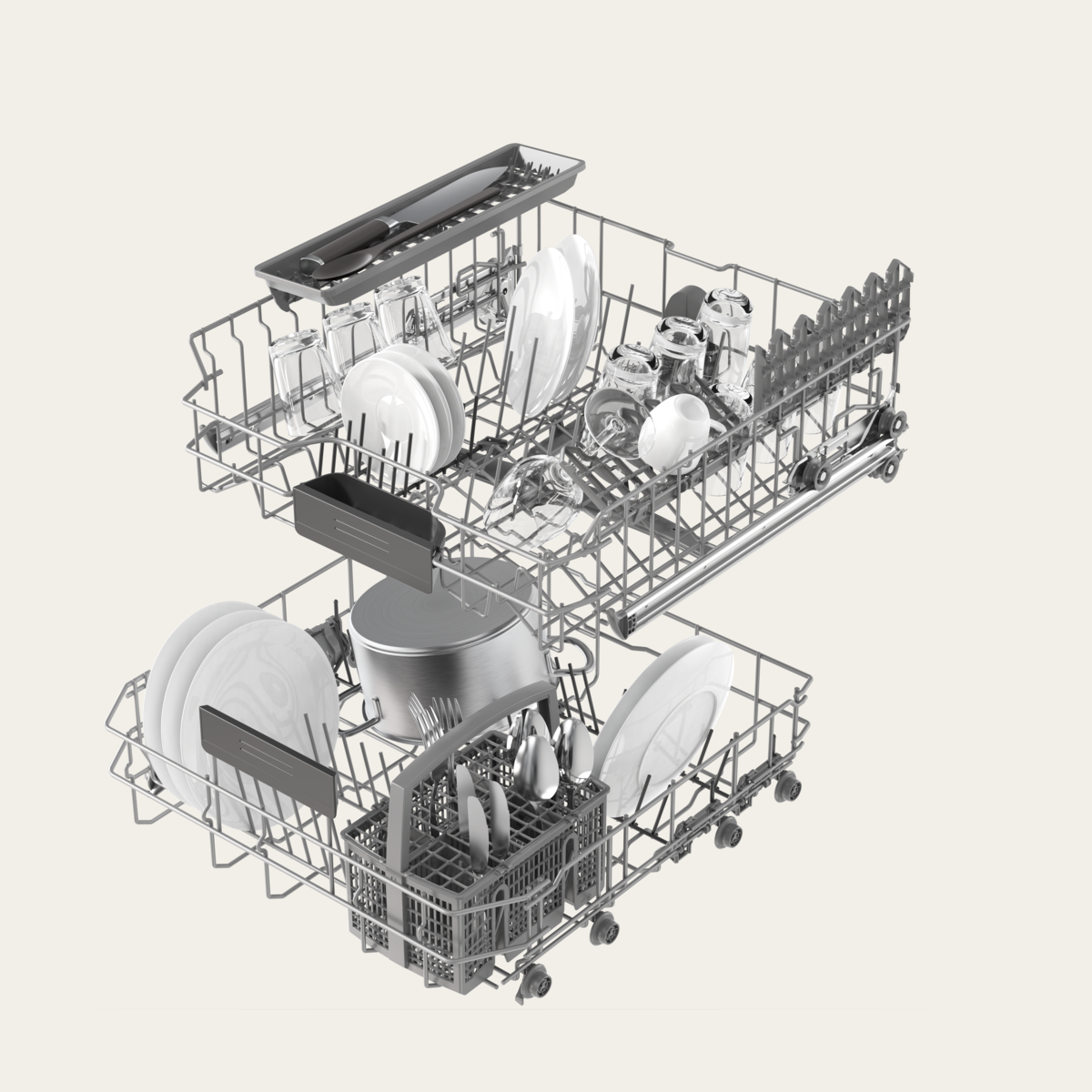 This efficient entry-level dishwasher for 13 standard place settings impresses with its automatic door opening function, energy label B, and a special 1-hour program for when time is of the essence.