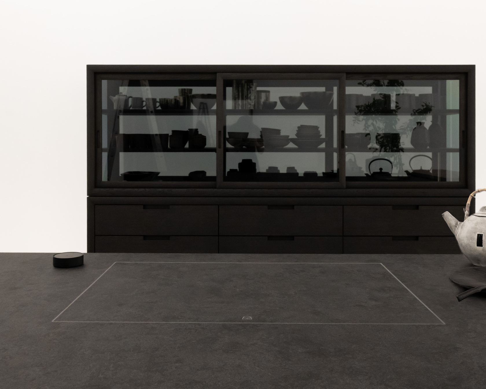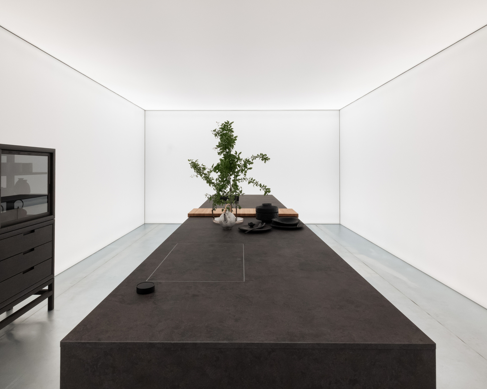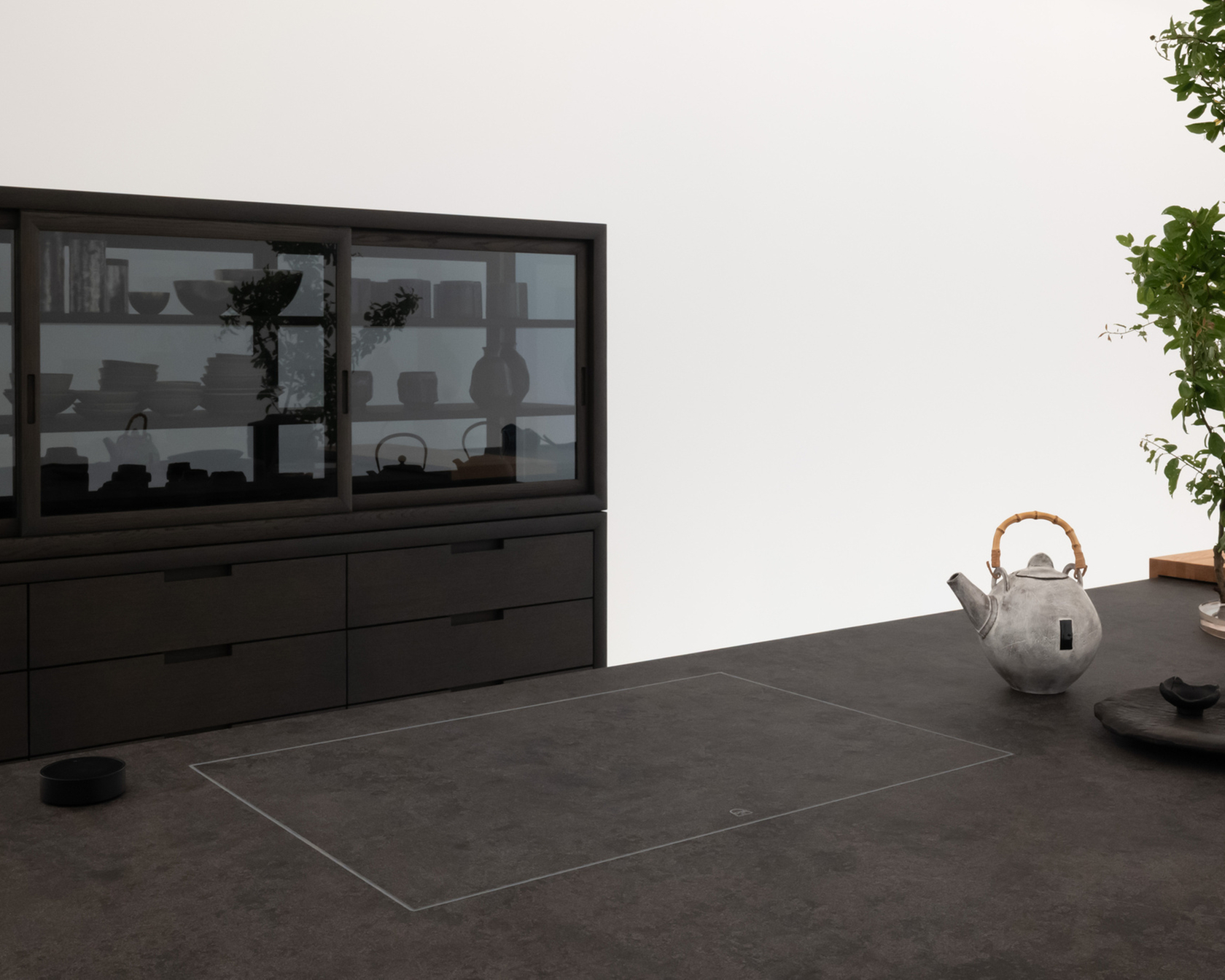 In the kitchen designed by Piero Lissoni, the Boffi kitchen island features Integra, a monolithic kitchen surface by V-ZUG that conceals technology instead of showing it off. Form, material, and light merge into a single cooktop that conveys a feeling of purity and perfection.