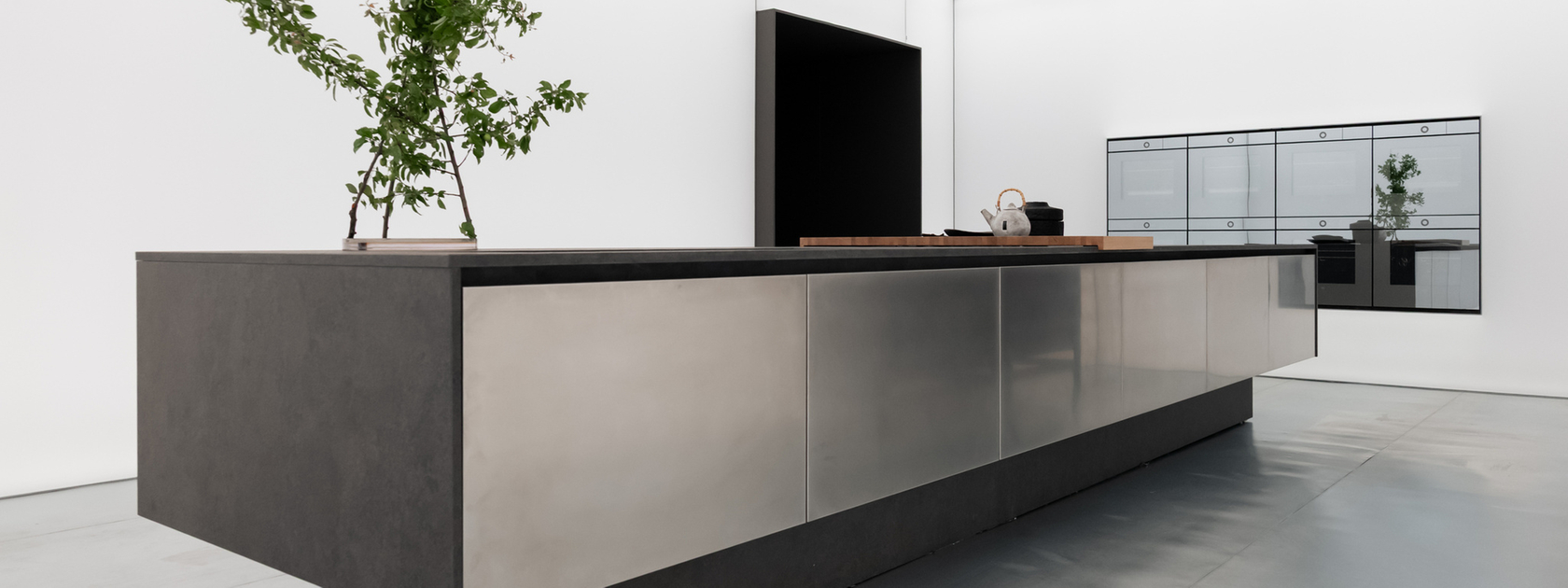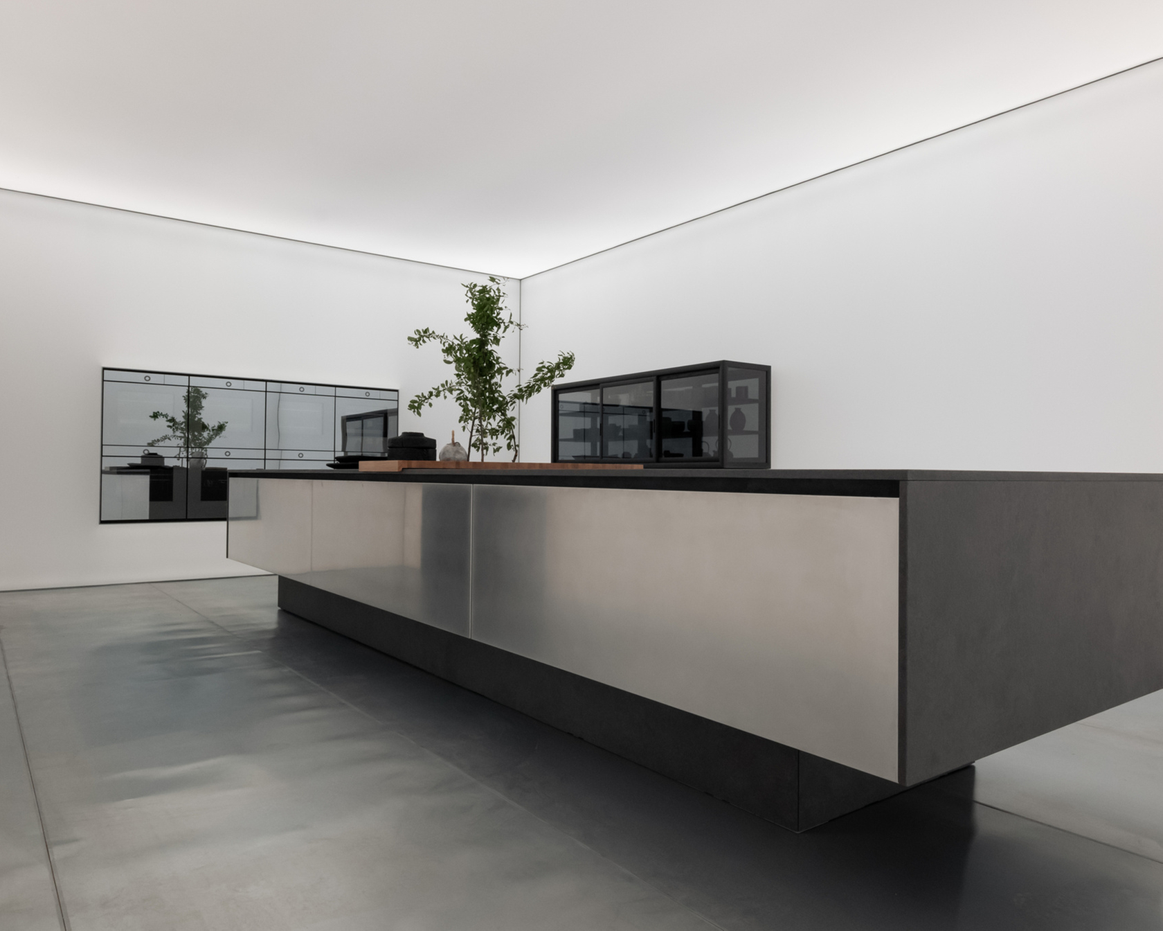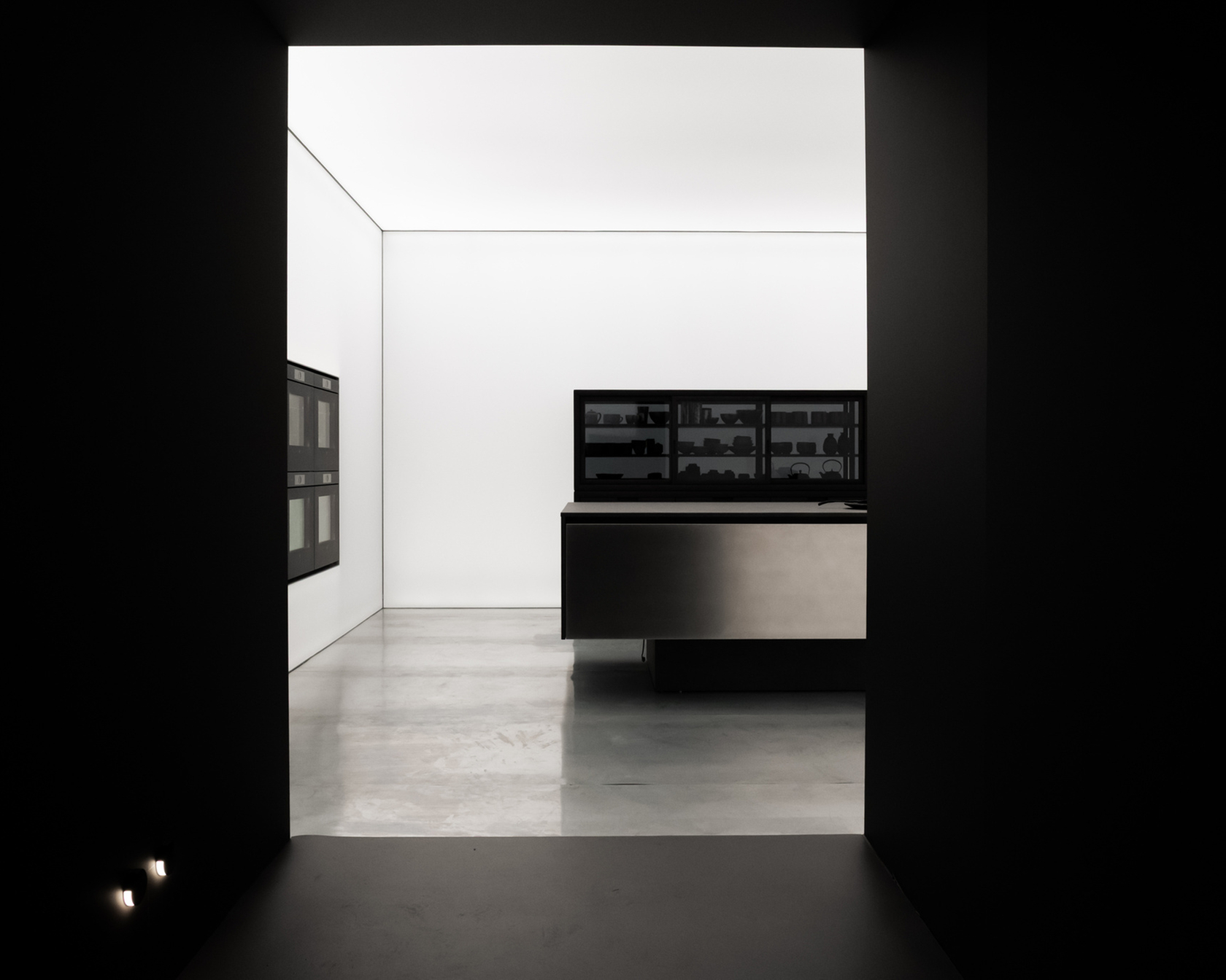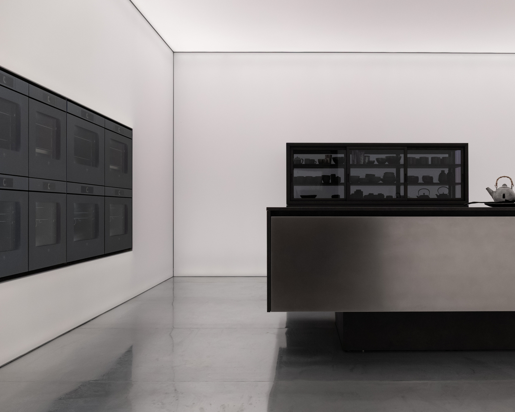 Actually, I didn’t integrate the appliances — they are the protagonists. For example, in one of the two rooms they are mounted inside a luminous wall. They are like paintings, technological works of art. I treated them in this way because of the beauty of their design, their high-tech quality, and their excellence as machines. I had no need for mimicry or artifice.